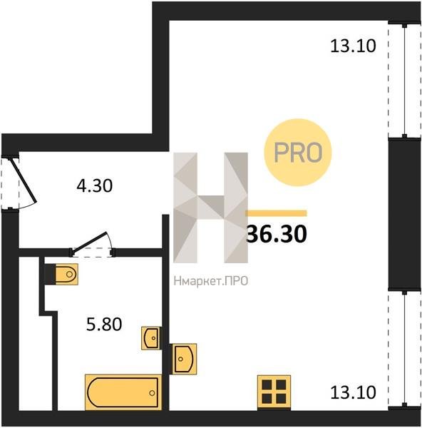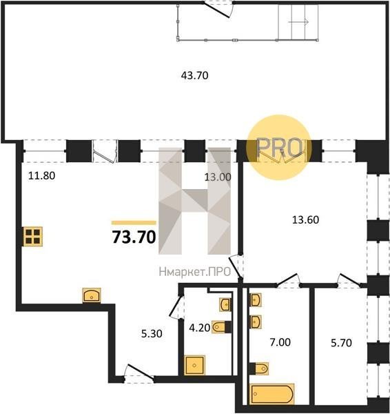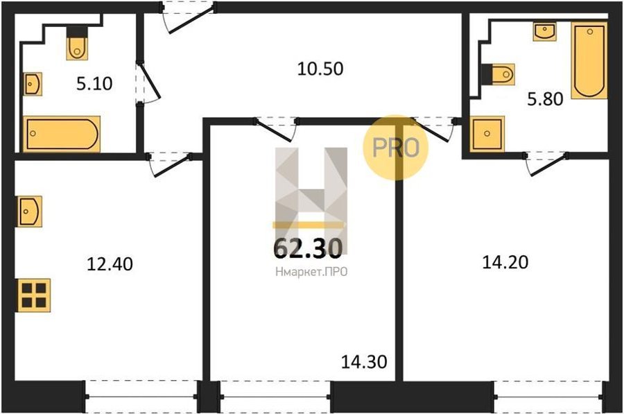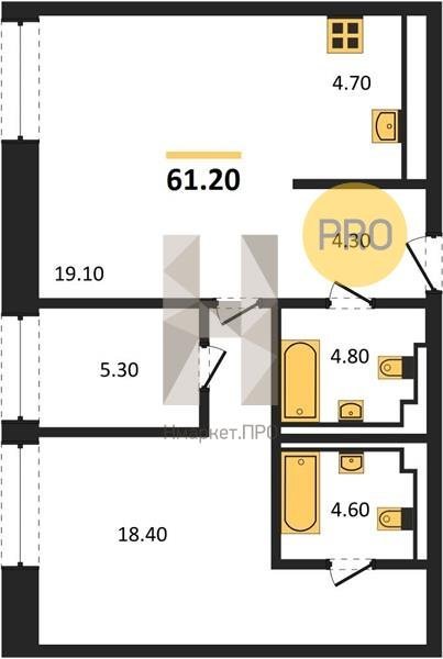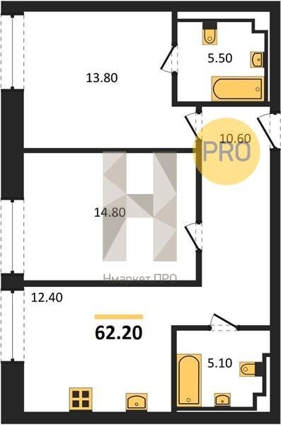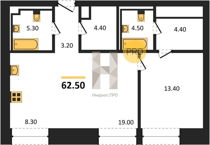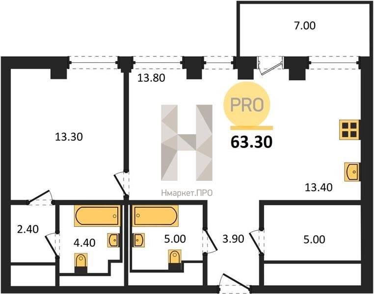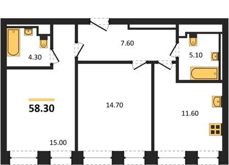 Площадь от 58.3 м2