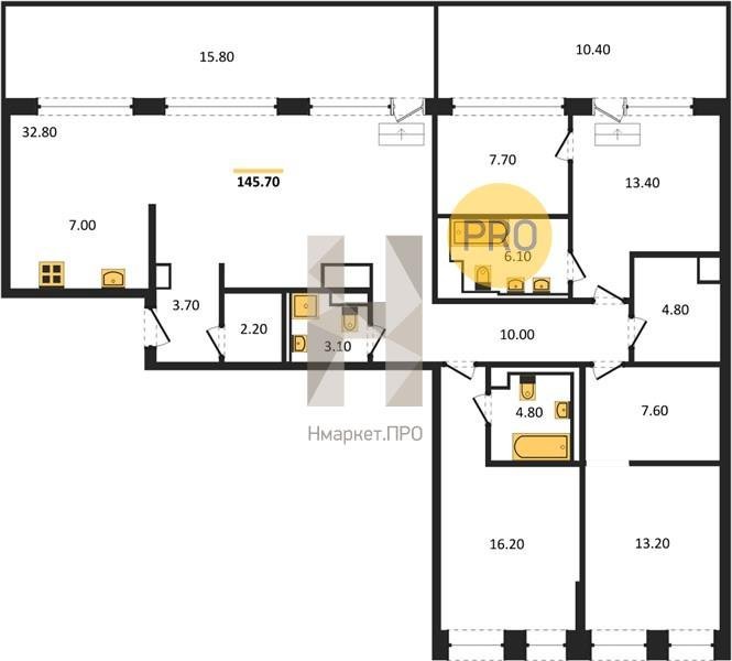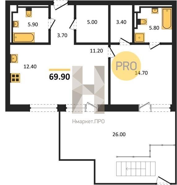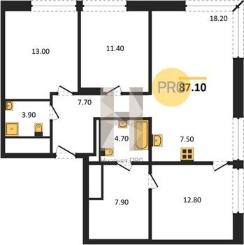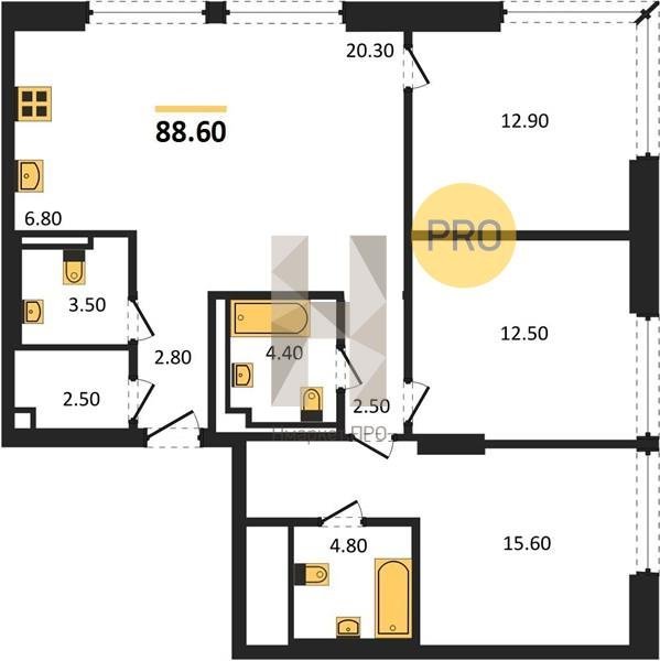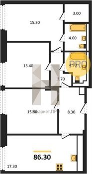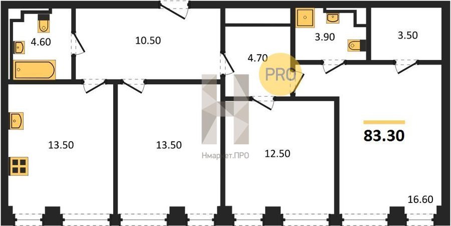 Площадь от 83.3 м2