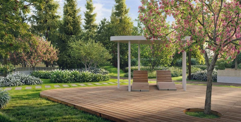 парк с зонами отдыха для взрослых и детей, а также многочисленные объекты