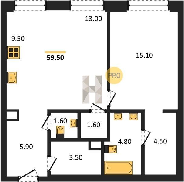 сдан 1 комната от 25.6 до 49.6 м2 от 12,8 до 25,0 млн. руб