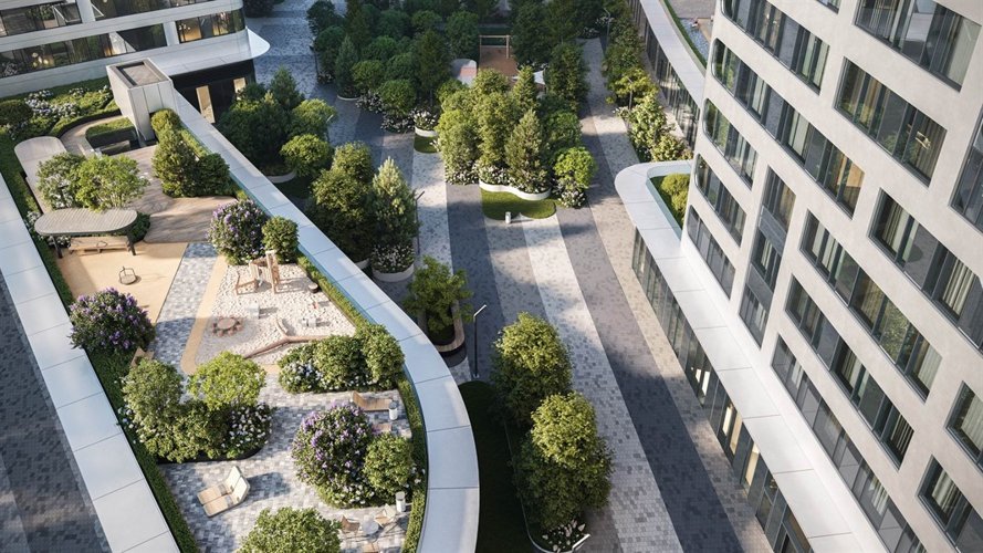 комплекс премиум-класса. Стремящиеся ввысь небоскребы, благоустроенный